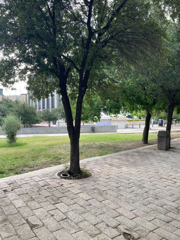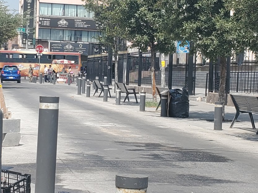 In Monterrey, this translates to there being almost no benches in the shade in the downtown area. City hall, museums, even when there are benches–most of the seating is either involved with a business or in the sun. Monterrey is a very hot city, and without shade or hydration, one can be in danger of collapse without some opportunity to rest. Again, it has nothing to do with whether people are actually lazy or if people are actually unhoused. Because a few cities in the United States and a few major corporations have projected “clean” downtowns, everyone should be moving or spending, or no one should be in a location. What does it say about the United States that we took away the concept of rest and relaxation for other people so that they appear “busy” enough to suit our tastes?