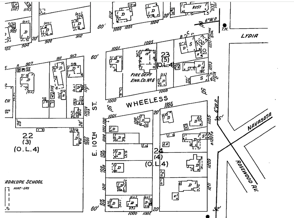 * Cabin image taken by Larry D. Moore, posted in Wikimedia Commons. Map exert taken from Sanborn Archives maintained by the Austin History Center.