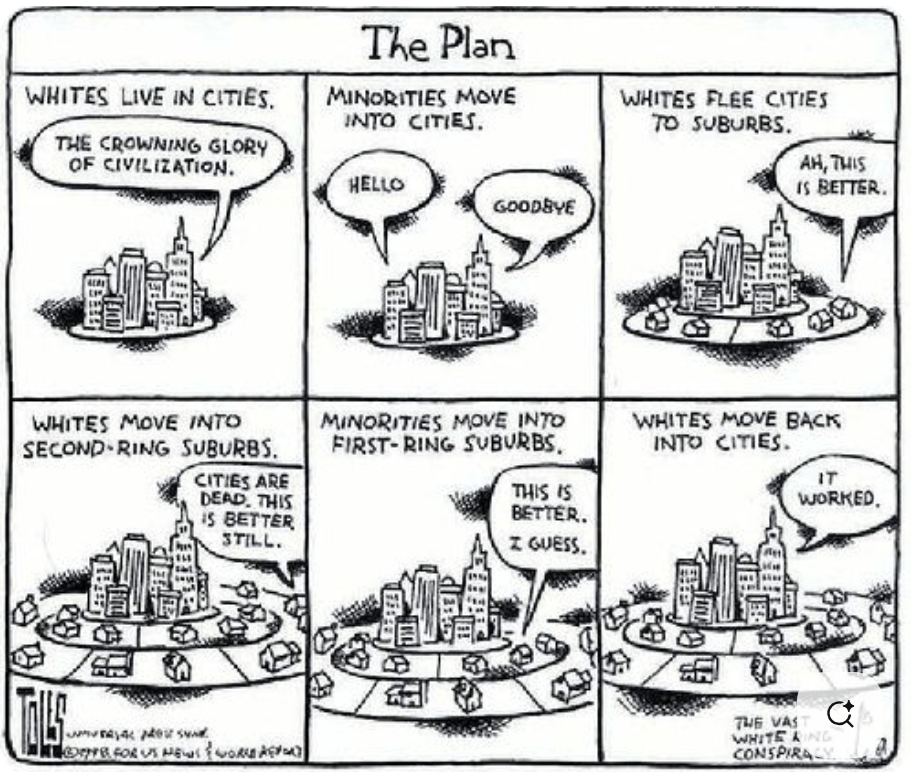 Furthermore, putting poor people in the middle of nowhere makes it easier to rationalize a lack of infrastructure, such as sidewalks, public libraries, internet services, and even third spaces. Even though predominantly white people were able to successfully charge the government to make their spaces livable, Black people and others were neglected even when we were in the middle of all the action. If we move to areas without readily available infrastructure, we are setting ourselves up to bear the additional costs of life without resources. For some reason, we have continued to accept this as “reasonable,” even as the cost of living continues to increase, and people brag about living in the middle of nowhere while driving 2-3 hours. None of this should have been acceptable, but as long as people worship “houses,” such behavior continues.